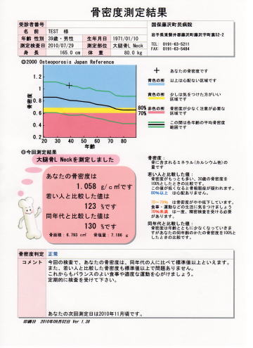 骨量は、50代から急激に減少し、大腿骨などの太い骨であっても骨量が減少していると骨が折れやすくなります。元気に老年期を迎えるため、そして大切な家族と自身の生活を守るために重要な検査です。